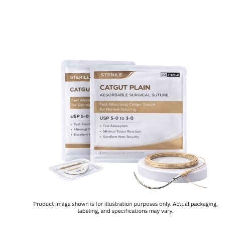 Catgut Plain is a sterile, absorbable surgical suture made from purified collagen derived from the submucosal layer of healthy sheep intestines. Designed for rapid absorption and reliable wound closure, it is ideal for dermal (skin) suturing and external knot tying procedures.